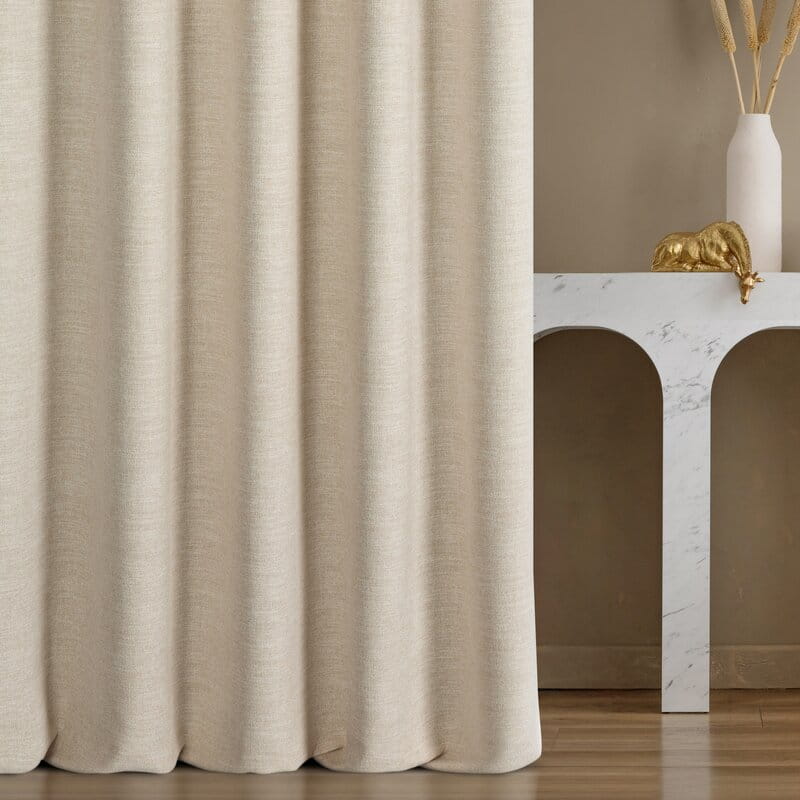 Struktura inspirowana naturalnym lnem nadaje tkaninie wyjątkowy urok – delikatnie rozprasza światło, tworząc efekt miękkiego, przyjemnego blasku. To materiał, który wprowadza do przestrzeni poczucie świeżości i naturalnego komfortu.