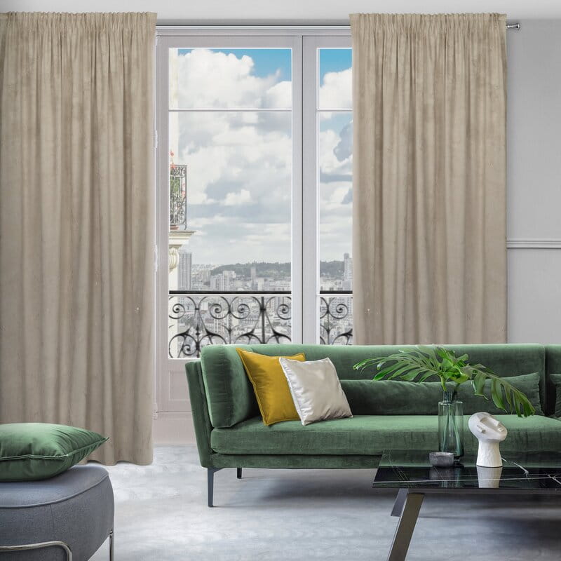 Zasłona WELUROWA Velvet w odcieniu beżu ze złotymi akcentami to stylowa i ponadczasowa dekoracja okna, która podkreśli elegancję i ciepło wnętrza. Wykonana z miękkiej, aksamitnej tkaniny, subtelnie odbija światło, nadając pomieszczeniu przytulny, ale i luksusowy charakter.