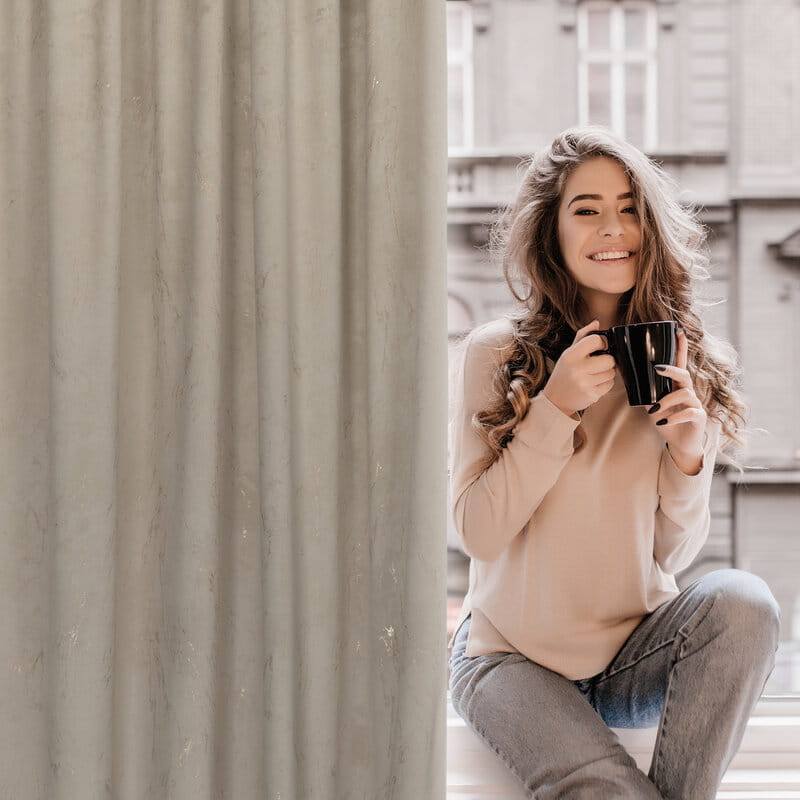 Dzięki gęstej strukturze materiału, zasłona zapewnia średnie zaciemnienie, a efekt marmuru dodaje jej nowoczesnego i wyrafinowanego stylu. Świetnie komponuje się z aranżacjami glamour, art déco, klasycznymi i nowoczesnymi. Idealna do salonu, sypialni, jadalni czy eleganckiego gabinetu.